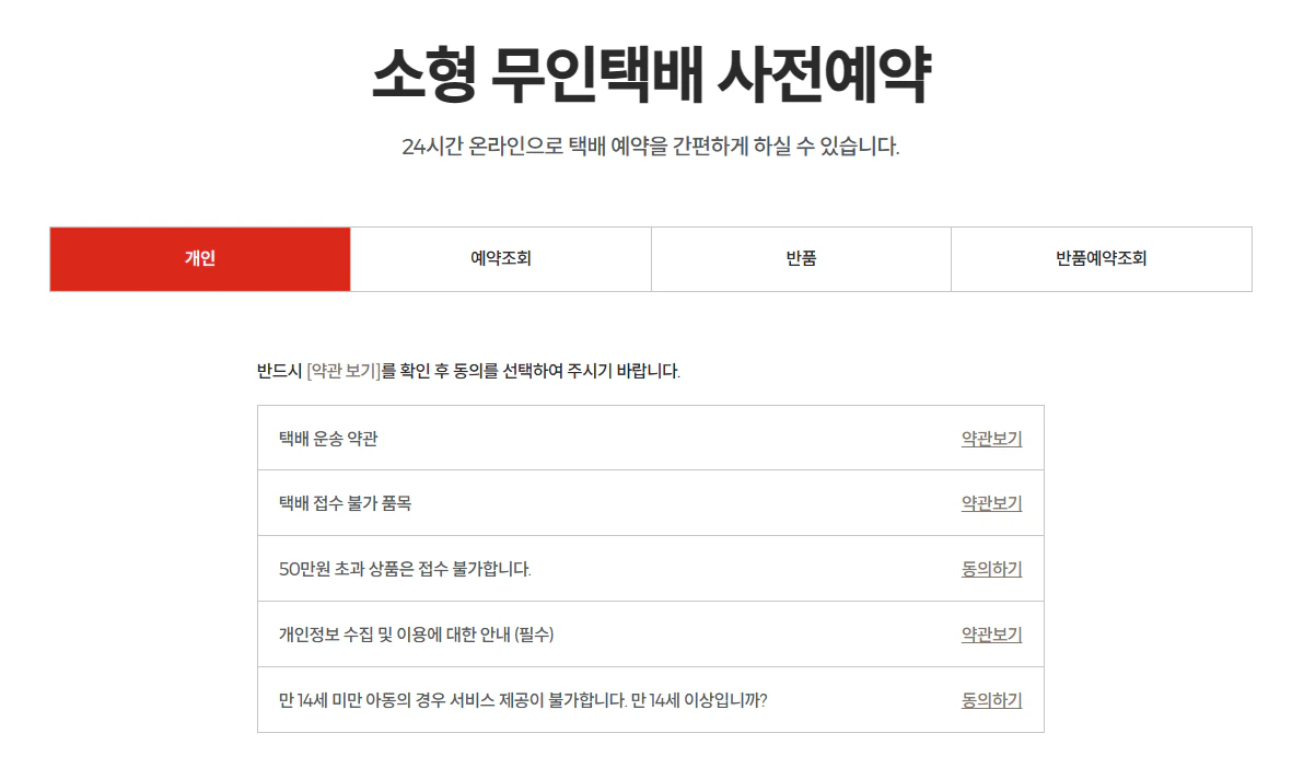 - 소형 무인 택배 사전 예약