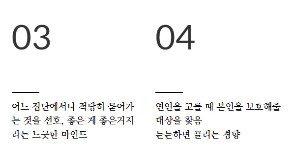 테토남은 어려운 문제에 쉽게 포기하지 않고, 테토녀는 자신의 의견을 분명하게 표현하는 편이에요. 옷차림도 깔끔하고 세련된 스타일을 선호하죠.