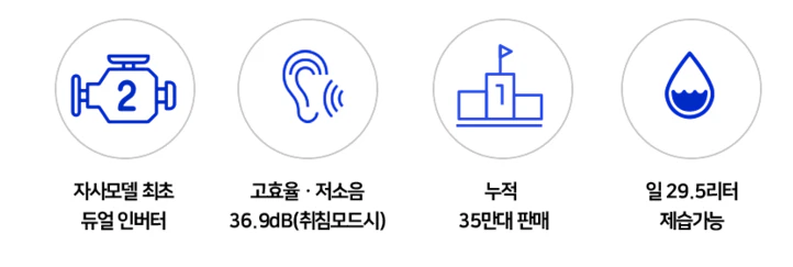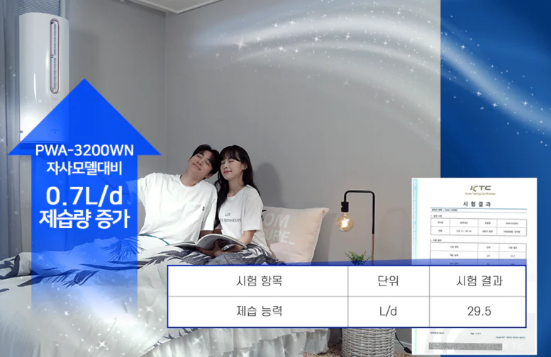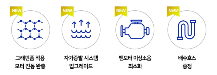 24년형의 새로운 점은 제습이 가능한 자가증발 시스템으로 하루 최대 29.5리터까지 물통을 비울 필요가 없습니다.