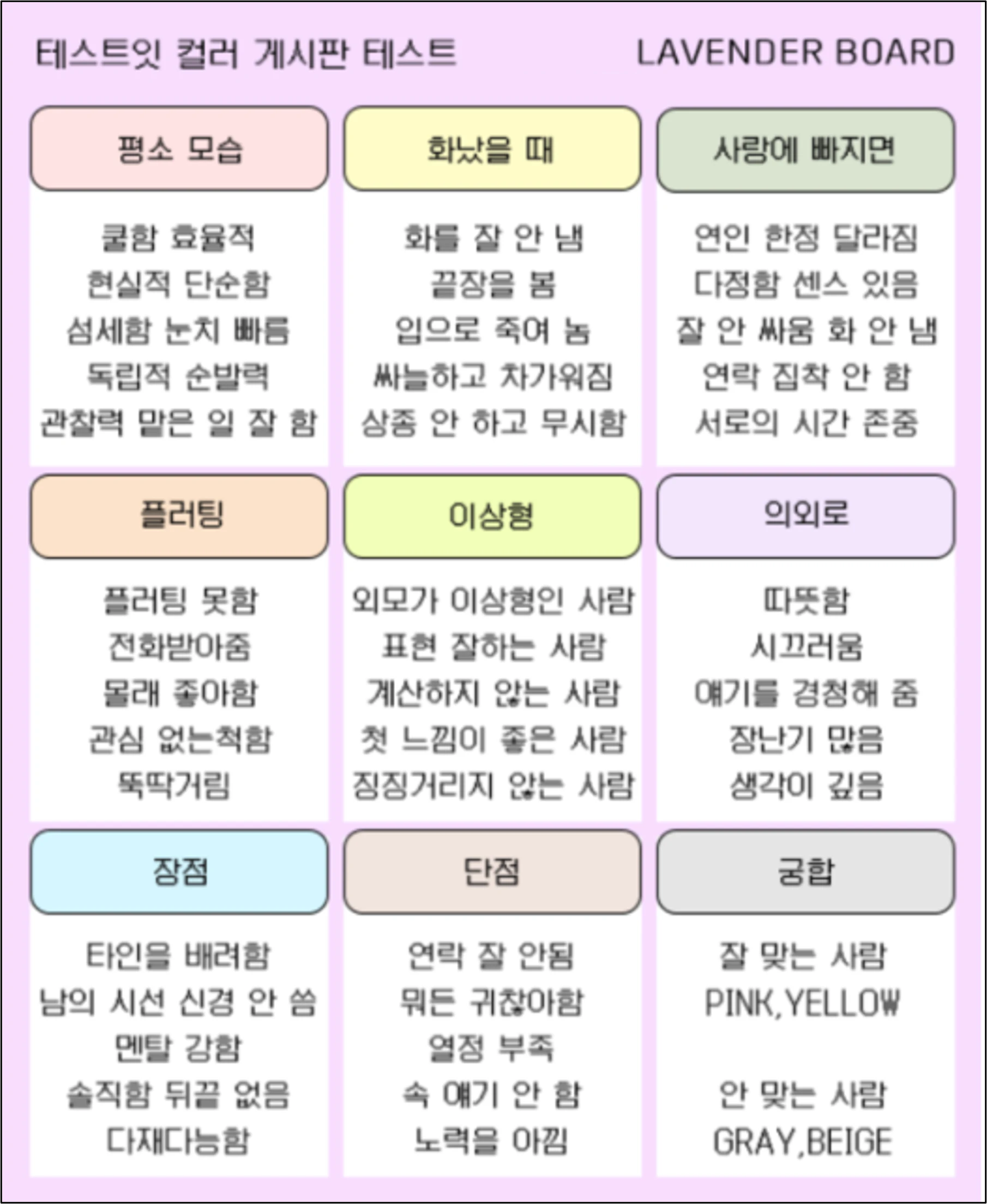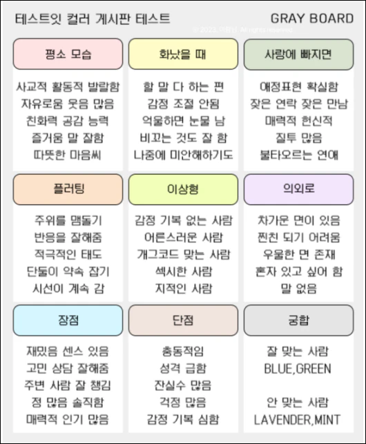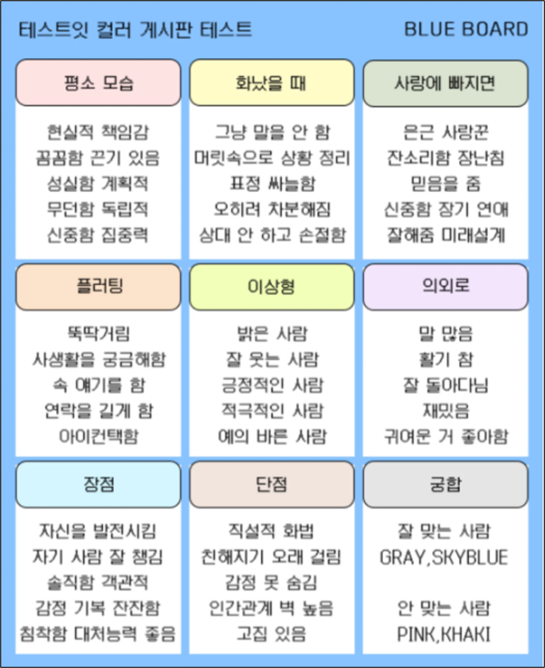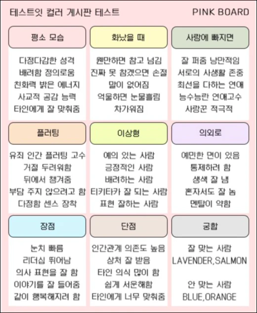 종합적인 내 성격을 알아보는 컬러 게시판 테스트