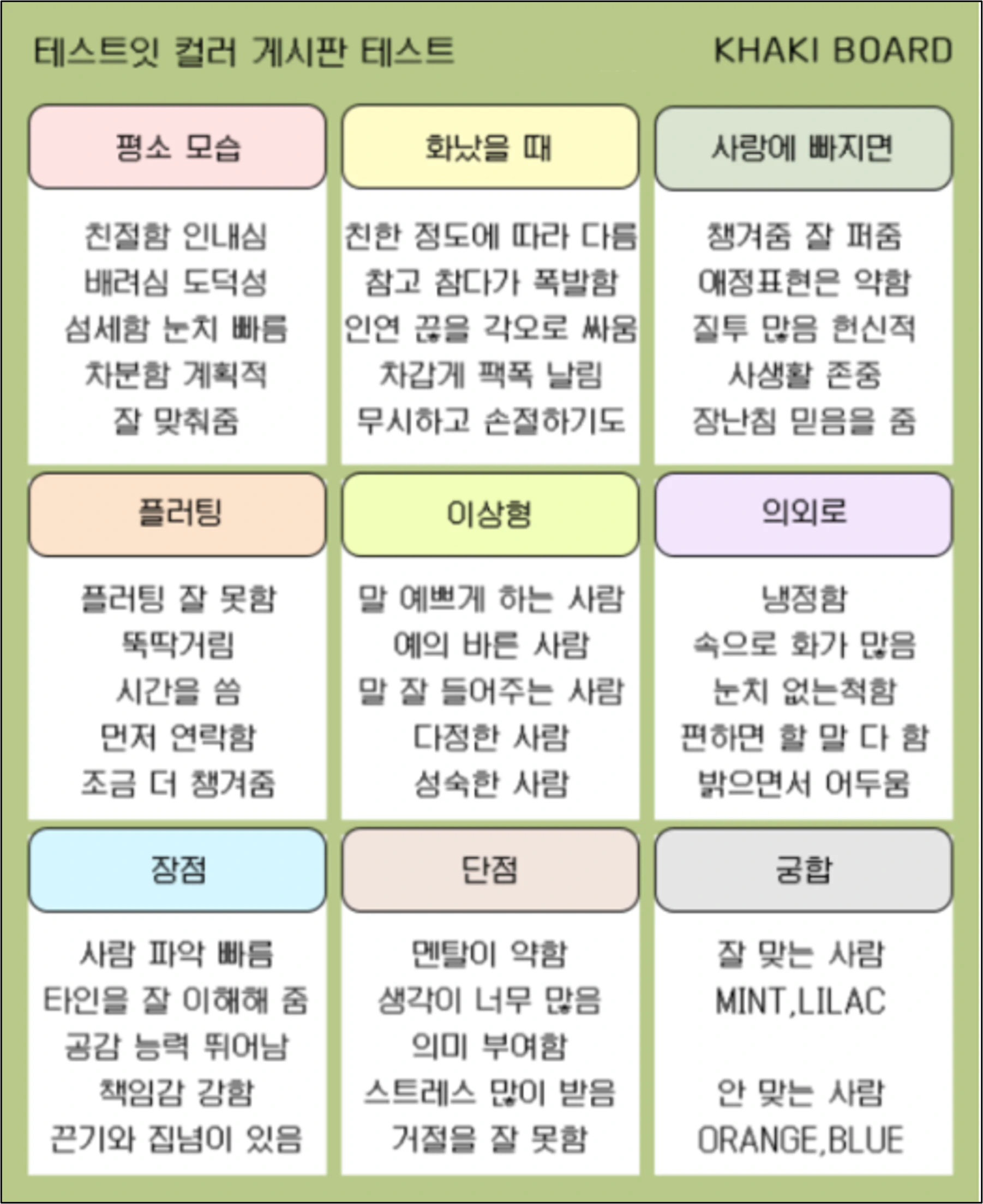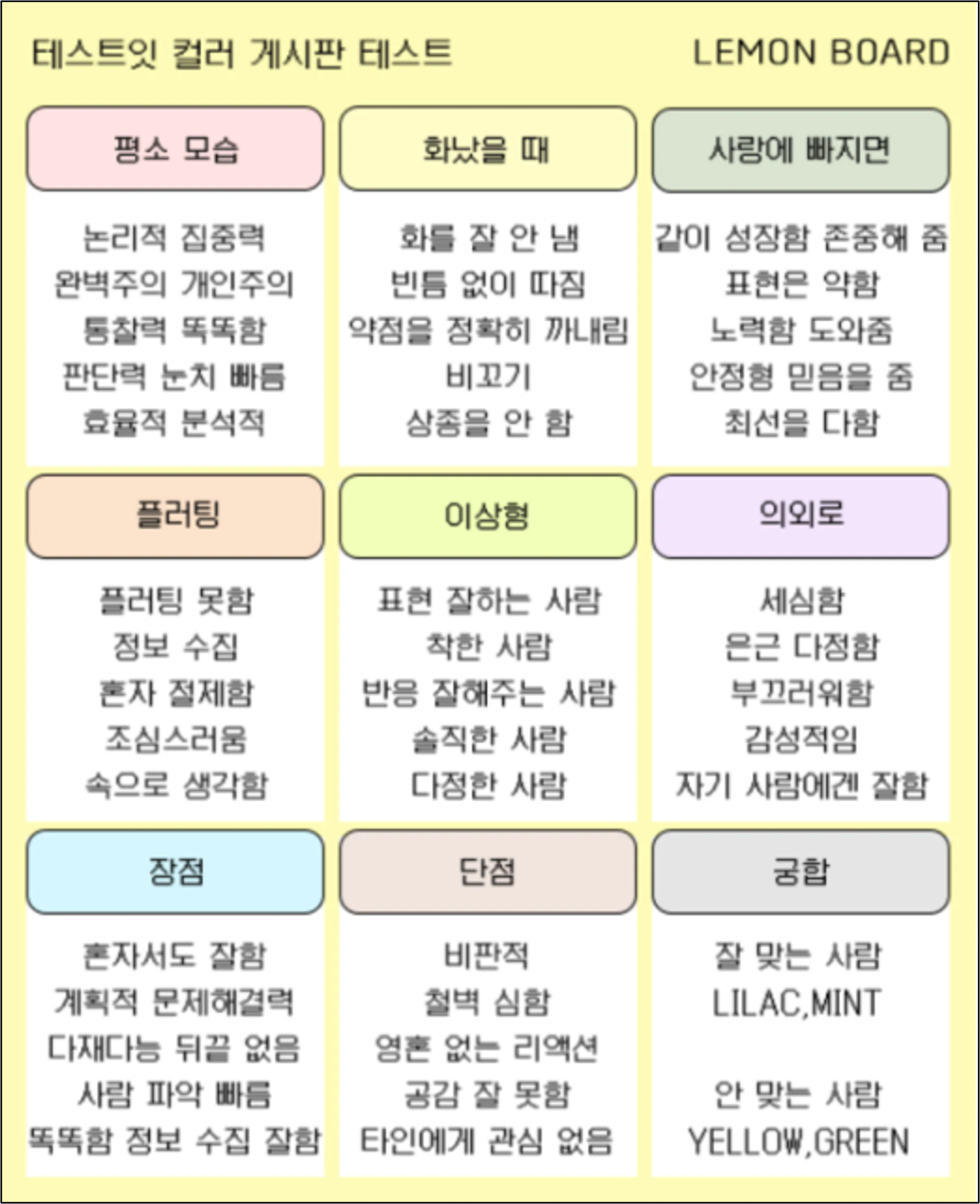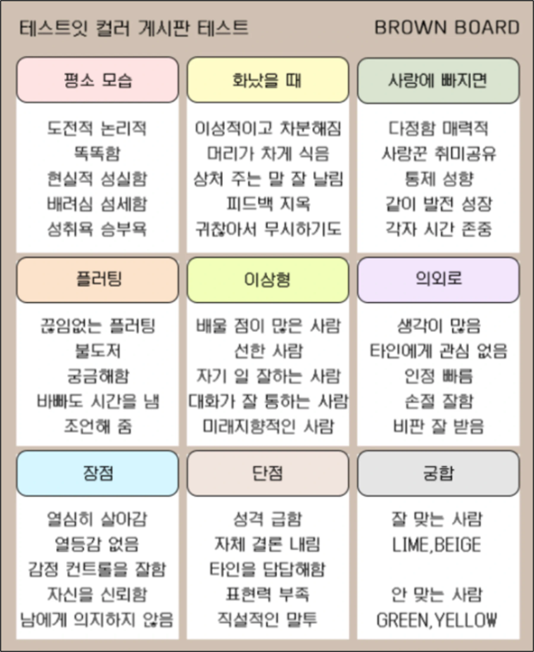 종합적인 내 성격을 알아보는 컬러 게시판 테스트